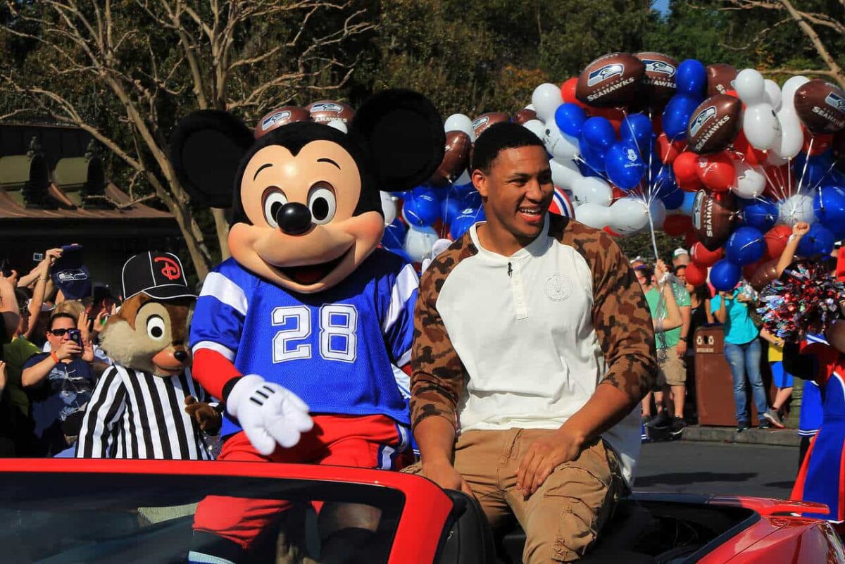 The victory atmosphere moved south from New Jersey to Walt Disney World Resort Monday where Seattle Seahawks linebacker Malcolm Smith celebrated his team’s stunning Super Bowl XLVIII championship win as thousands of fans lined Main Street, U.S.A. Just hours after his title win against the Denver Broncos, Smith was riding high atop a convertible smiling and waving to guests at Walt Disney World Resort.