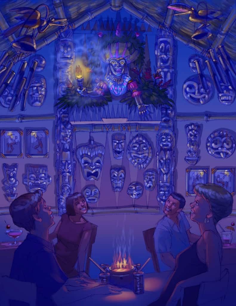 Concept art for the changes at the Polynesian are decorating the walls that cover up the work in the lobby